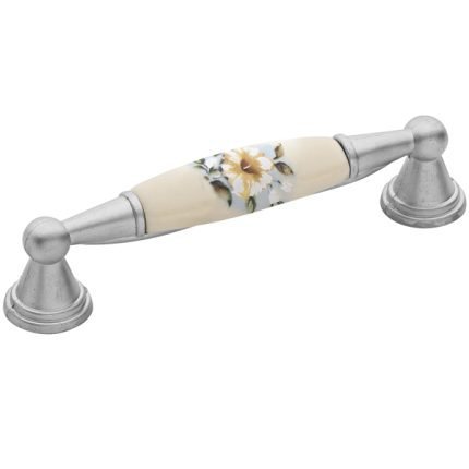 Roline 521 Λαβή Eπίπλου από Ζάμακ & Πορσελάνη Old Silver-Stone με Κέντρα 96mm