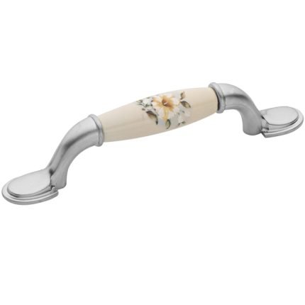 5,40 €Roline 522 Λαβή Eπίπλου από Ζάμακ & Πορσελάνη Νίκελ Σατινέ-Κρακελέ με Κέντρα 128mm