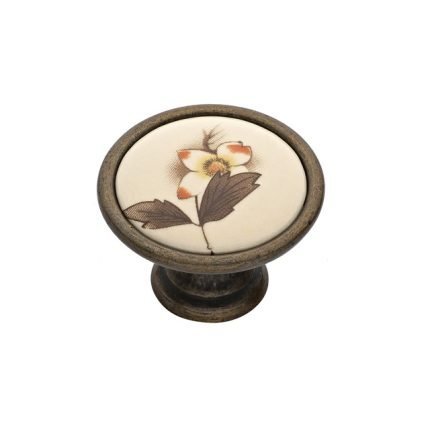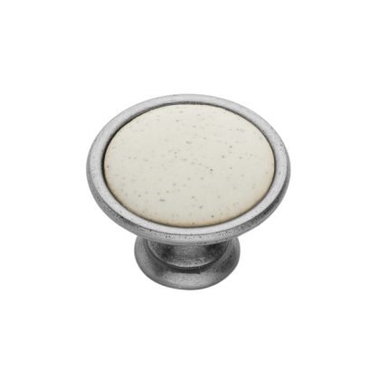 2,10 €Roline 523 Πόμολο Eπίπλου από Ζάμακ & Πορσελάνη Old Silver-Κρακελέ Φ33mm
