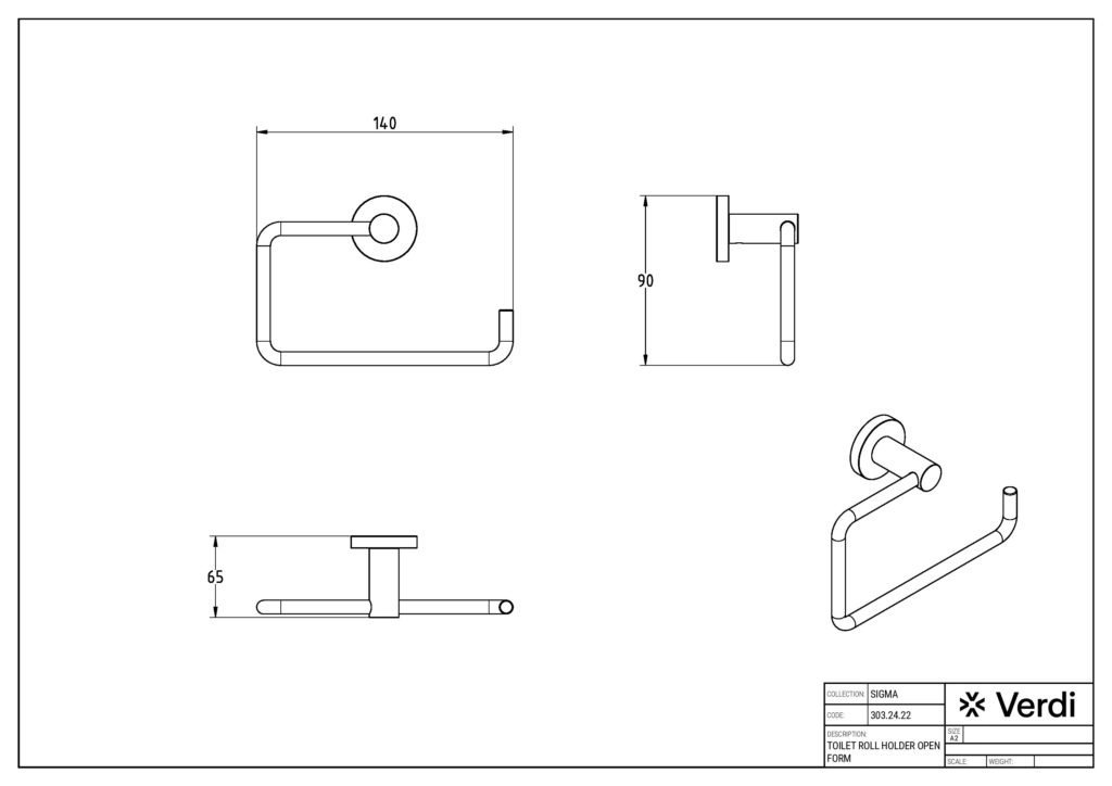 303.24.22 Ανοιχτή Χαρτοθήκη SIGMA 140x65x90 by Verdi