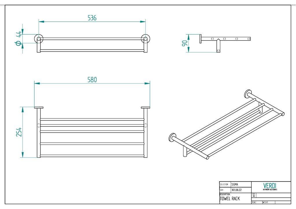303.38.22 Ραφιέρα SIGMA 600x250x90 by Verdi