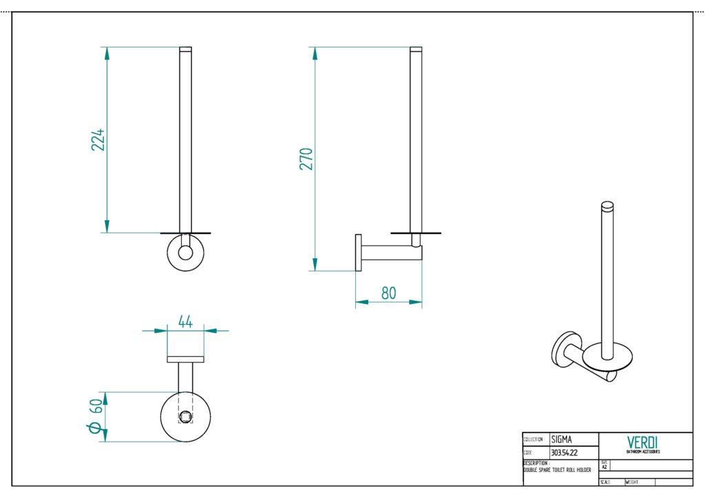 303.54.22 Εφεδρική Χαρτοθήκη δύο τεμαχίων SIGMA 60x100x270 by Verdi