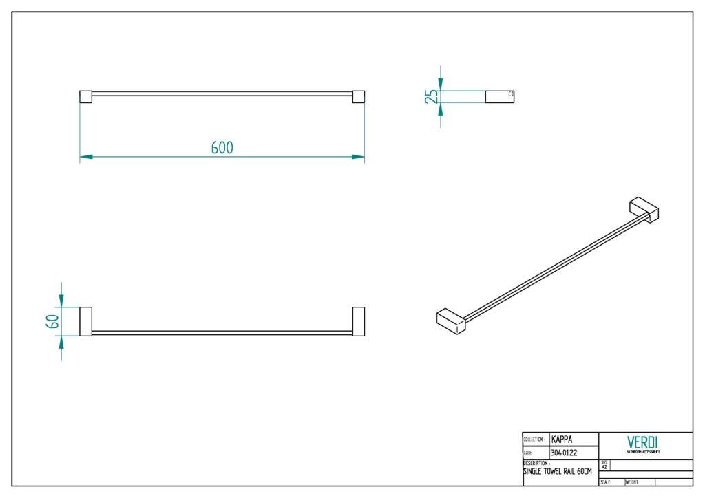 304.01.22 Μονή Πετσετοθήκη KAPPA 600x60x25 by Verdi