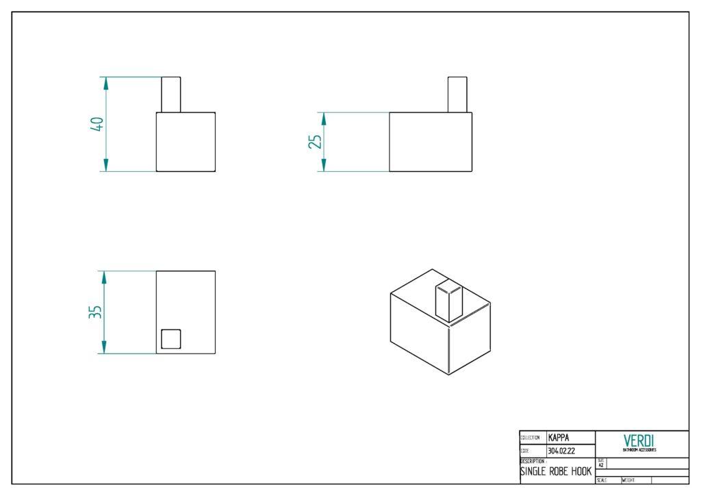 304.02.22 Μονό Άγκιστρο KAPPA 25x35x40 by Verdi
