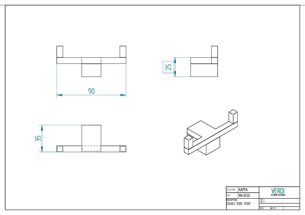 304.12.22 Διπλό Άγκιστρο KAPPA 90x35x25 by Verdi