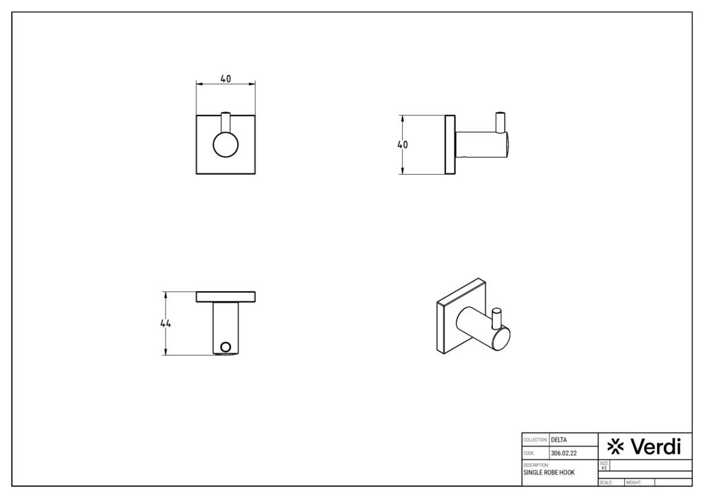 306.02.22 Μονό Άγκιστρο DELTA 44x42x40 by Verdi