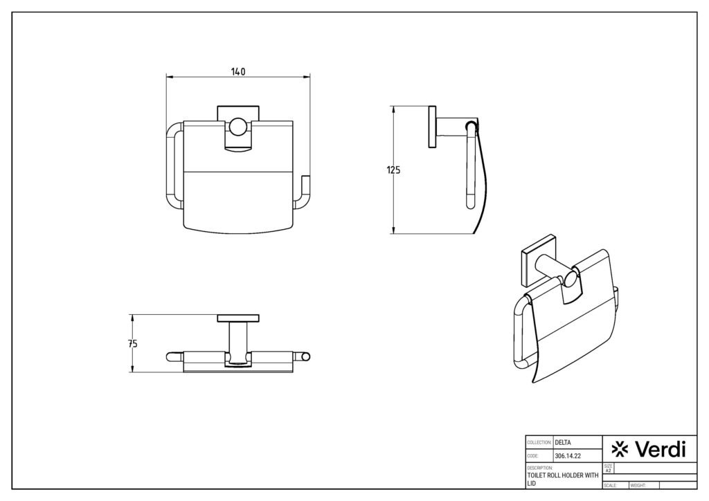306.14.22 Χαρτοθήκη με κάλυμμα DELTA 140x75x125 by Verdi