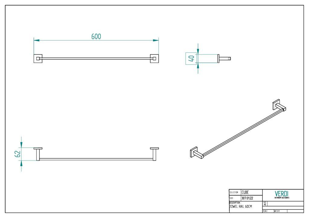 307.11.22 Μονή Πετσετοθήκη CUBE 400x62x40 by Verdi
