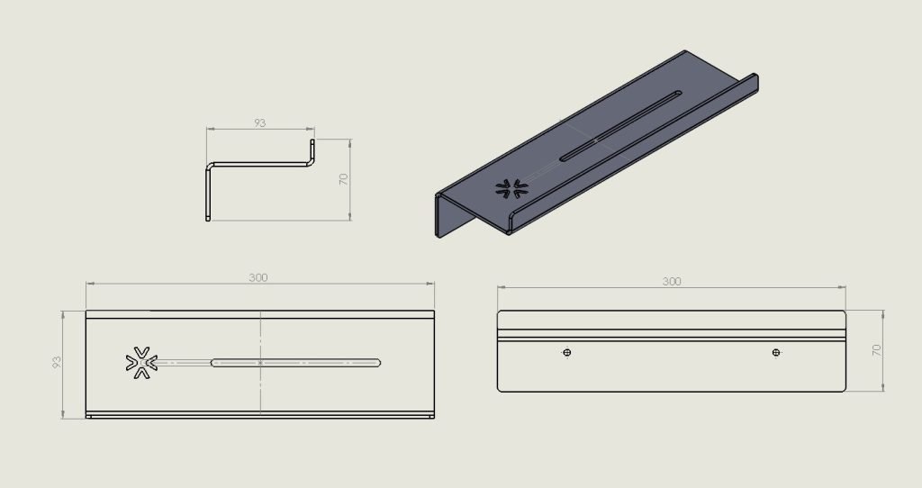 723.25.05 Ράφι Μικρής Πρόσοψης Με Αποστράγγιση Strantza – Black Mat 300x93x70 by Verdi