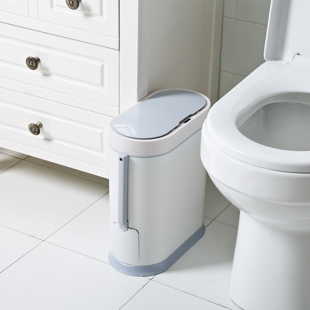 Αδιάβροχος Κάδος Πλαστικός SLIM LINE 8L Λευκό με Σένσορα & ενσωματωμένο Πιγκάλ