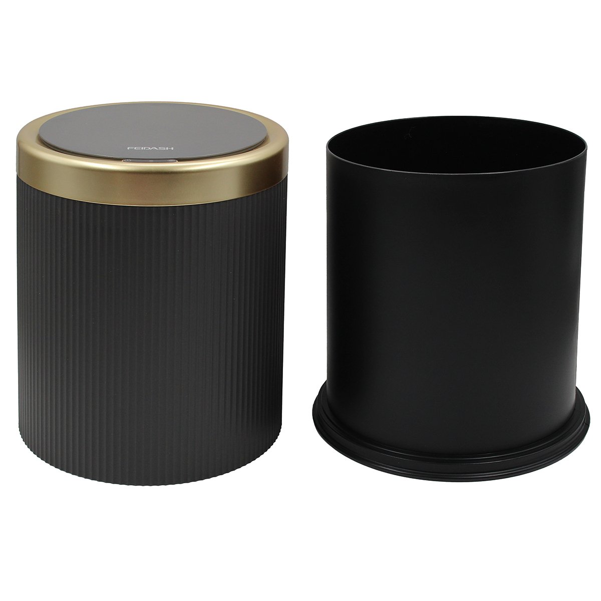 Αυτόματος κάδος Επαναφορτιζόμενος με USB σε μάυρο/χρυσό - Φ22x27cm. Επαναφορτιζόμενος με θύρα USB TYPE C Ανοίγει μόνος του με κίνηση ή με touch. Κλείνει αυτόματα μετά από μερικά δευτερόλεπτα ή με touch. Δεν περιλαμβάνεται το καλώδιο και ο φορτιστής.