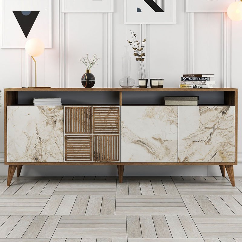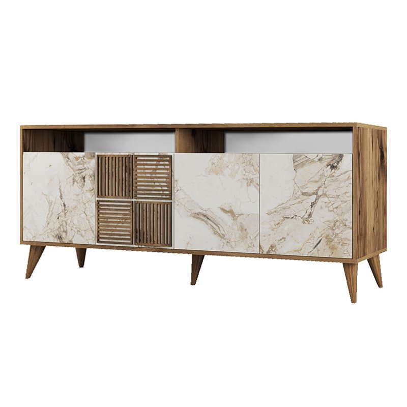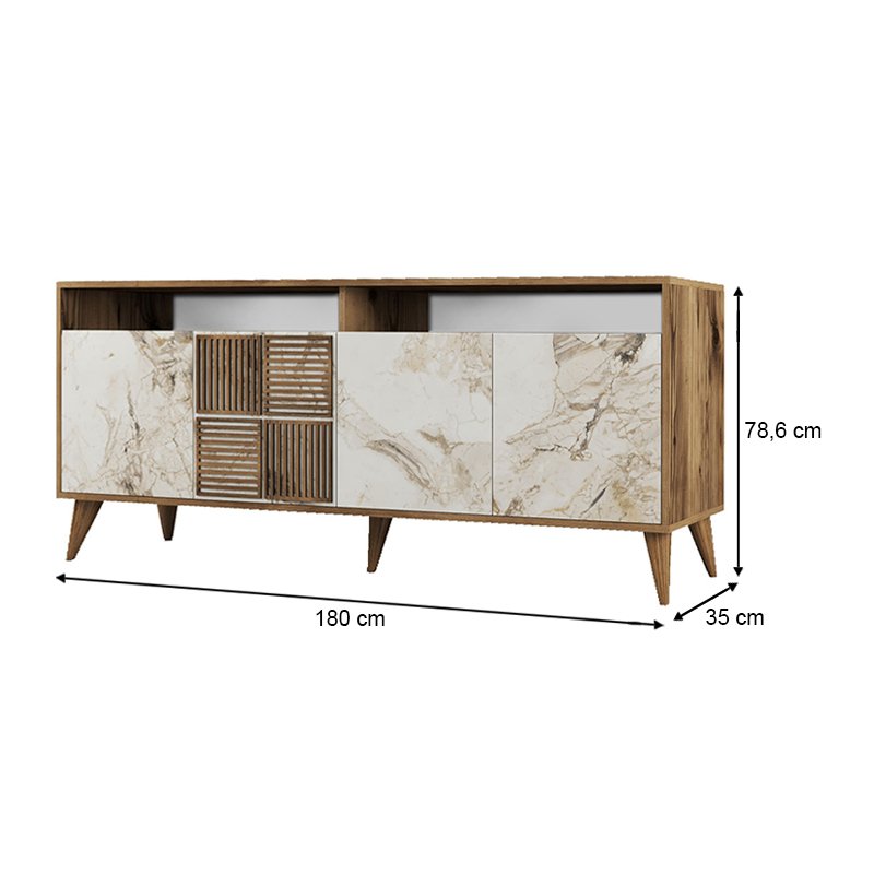 Μπουφές Milan Megapap χρώμα καρυδί – λευκό εφέ μαρμάρου 180x35x78,6εκ.