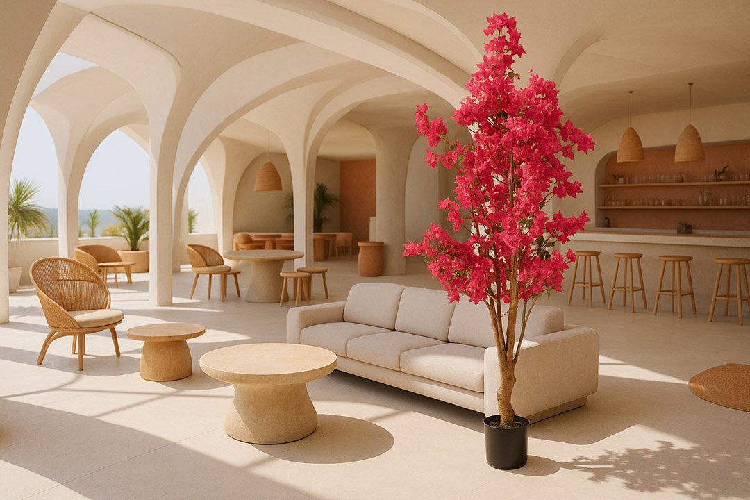 Η τεχνητή μπουκαμβίλια αποτελεί μία εντυπωσιακή επιλογή διακόσμησης που θα φωτίσει με τα εντυπωσιακά φούξια φύλλα τον χώρο στον οποίο θα επιλέξετε να την τοποθετήσετε δίνοντας του παράλληλα και μία ανοιξιάτικη νότα.
