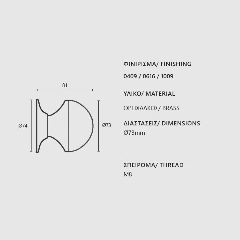 Μπούλ Εξώπορτας Νικελ Ματ/Χρώμιο Ζωγομετάλ 86