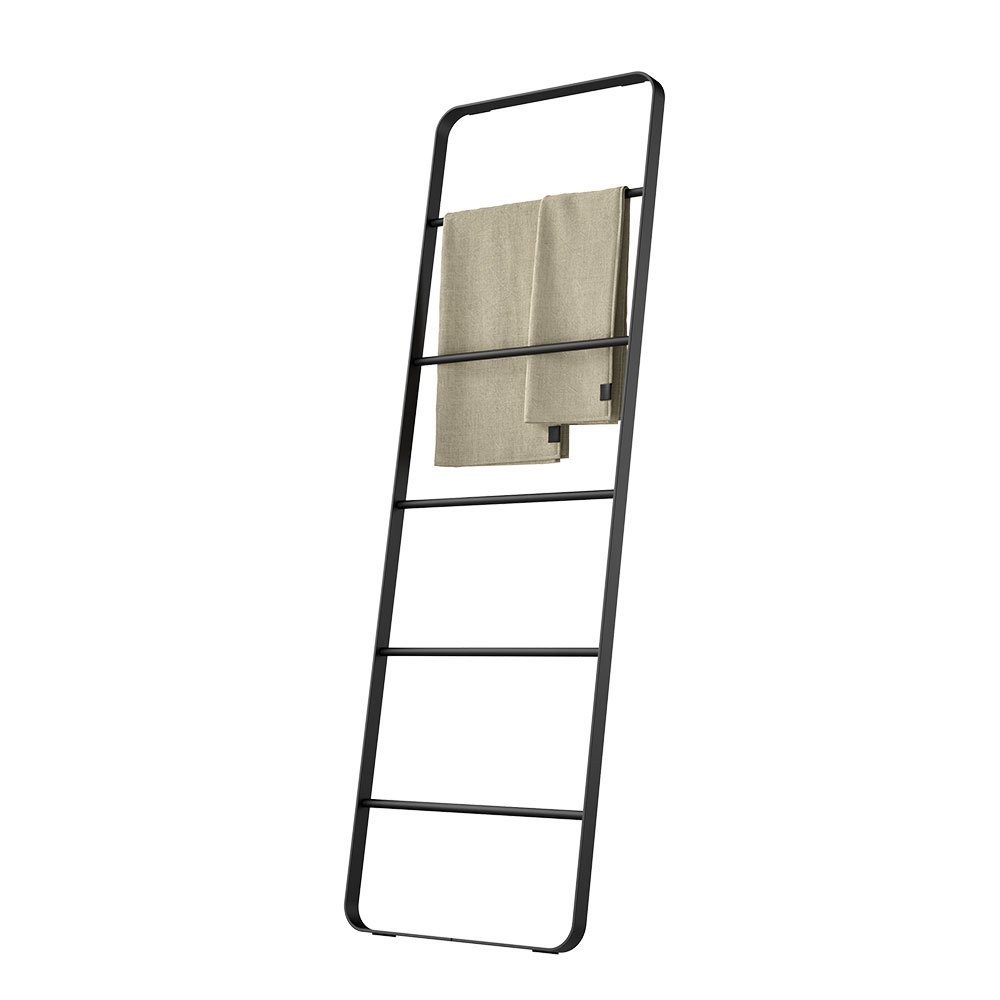 Αυτή η σκάλα κρεμάστρα είναι μια εναλλακτική λύση της παραδοσιακής ράβδου πετσετών. Στεγνώστε τις πετσέτες σας ή κρεμάστε τα ρούχα σας στην κορυφή της. Το σχέδιο σε μαύρο χρώμα δίνει στο μπάνιο σας μια άμεση φρέσκια εμφάνιση! Η σκάλα είναι πλήρως συναρμολογημένη, ώστε να μπορείτε να την τοποθετήσετε απευθείας στον τοίχο και να τη χρησιμοποιήσετε.