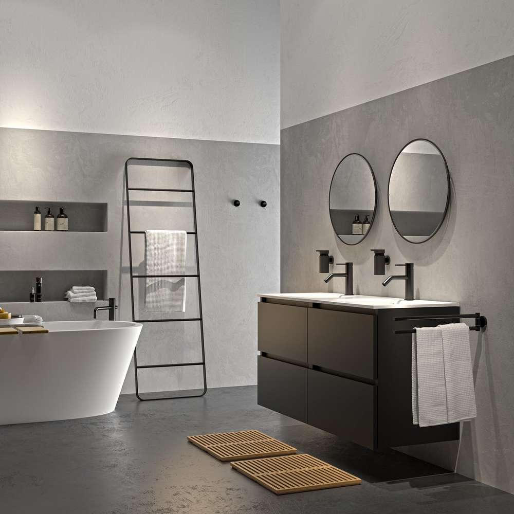 - Μαύρες πινελιές: δώστε στο μπάνιο ή την τουαλέτα σας μια τολμηρή, βιομηχανική εμφάνιση