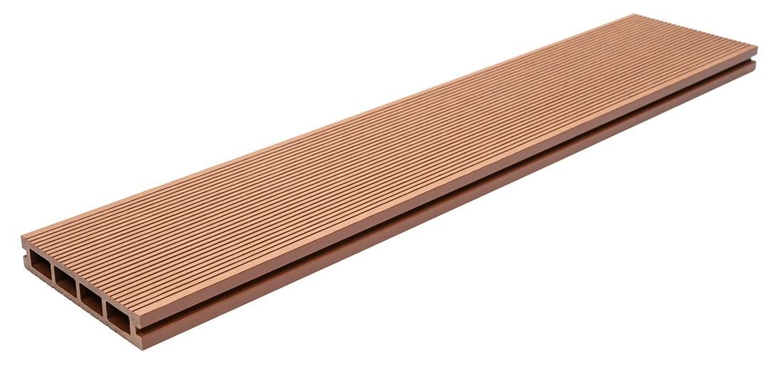 Συνθετικό δάπεδο Deck WPC εξωτερικού χώρου που αποτελείται από 55% ξύλο και 35% HDPE και 10% ρητίνες, UV σταθεροποιητές κλπ. Είναι διπλής όψης με στενό χτένι στη μία όψη και φαρδύ στην άλλη. Ιδανική επιλογή για πάτωμα πισίνας, βεράντας, εξωτερικούς χώρους καταστημάτων, κήπους, μαρίνες κλπ.