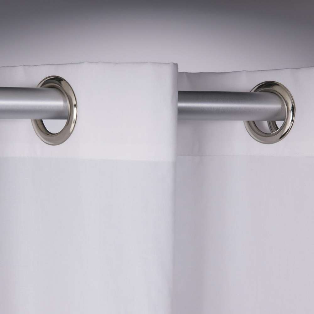 Κομψή δίχρωμη κουρτίνα μπάνιου από μείγμα βαμβακιού και πολυεστέρα. Αυτός ο συνδυασμός υλικών χαρίζει στην κουρτίνα μπάνιου Double της Sealskin επιπλέον σώμα και μια σταθερή και πολυτελή εμφάνιση. Στο πάνω μέρος υπάρχουν μεγάλοι κρίκοι από ανοξείδωτο ατσάλι, ώστε η κουρτίνα να μπορεί να κρεμαστεί εύκολα.