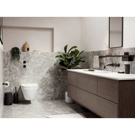 Η επιτοίχια τοποθέτηση εξοικονομεί χώρο και διατηρεί τον χώρο τακτοποιημένο, ενώ το ματ μαύρο φινίρισμα προσδίδει διακριτική πολυτέλεια.