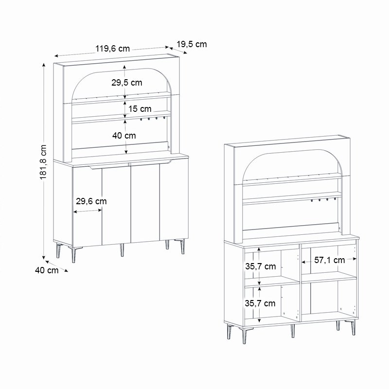 • Διαστάσεις: Μήκος 120 x Βάθος 40 x Ύψος 181,8 εκ.