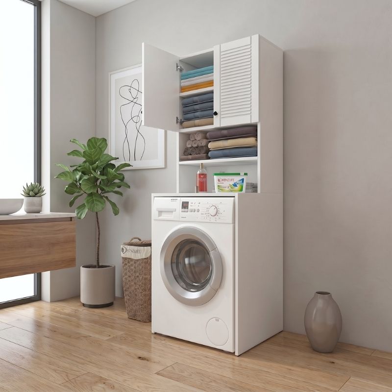 Έπιπλο πλυντηρίου Femur Megapap χρώμα λευκό 66x55x180εκ.