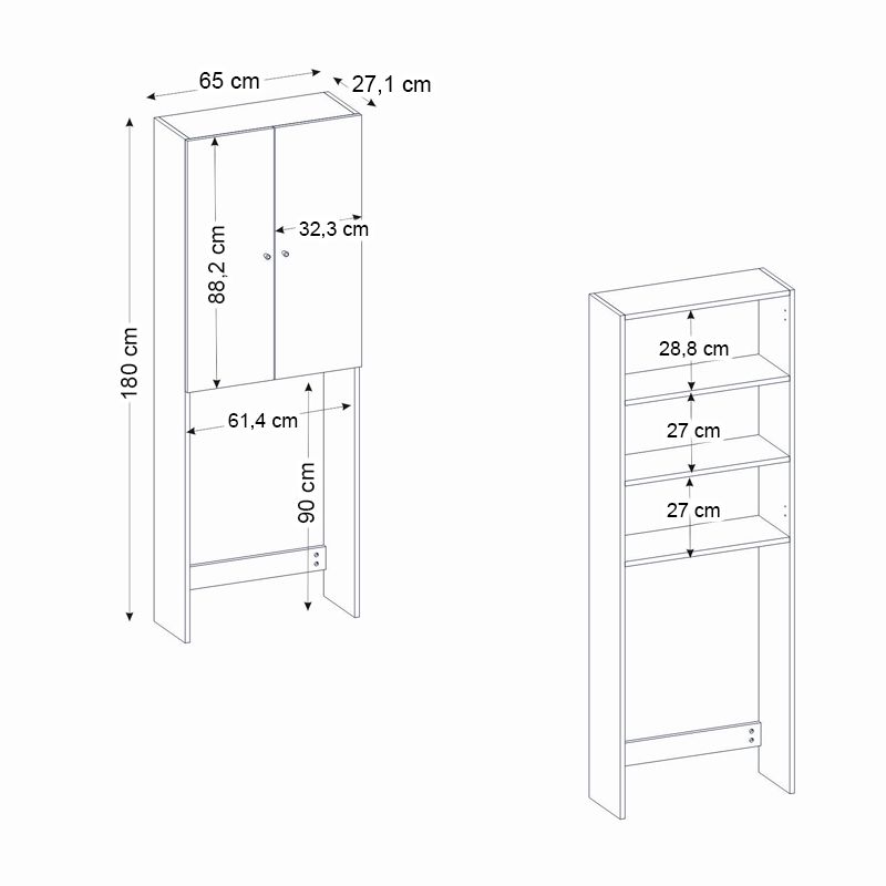 • Διαστάσεις: Μήκος 65 x Βάθος 27,1 x Ύψος 180 εκ.