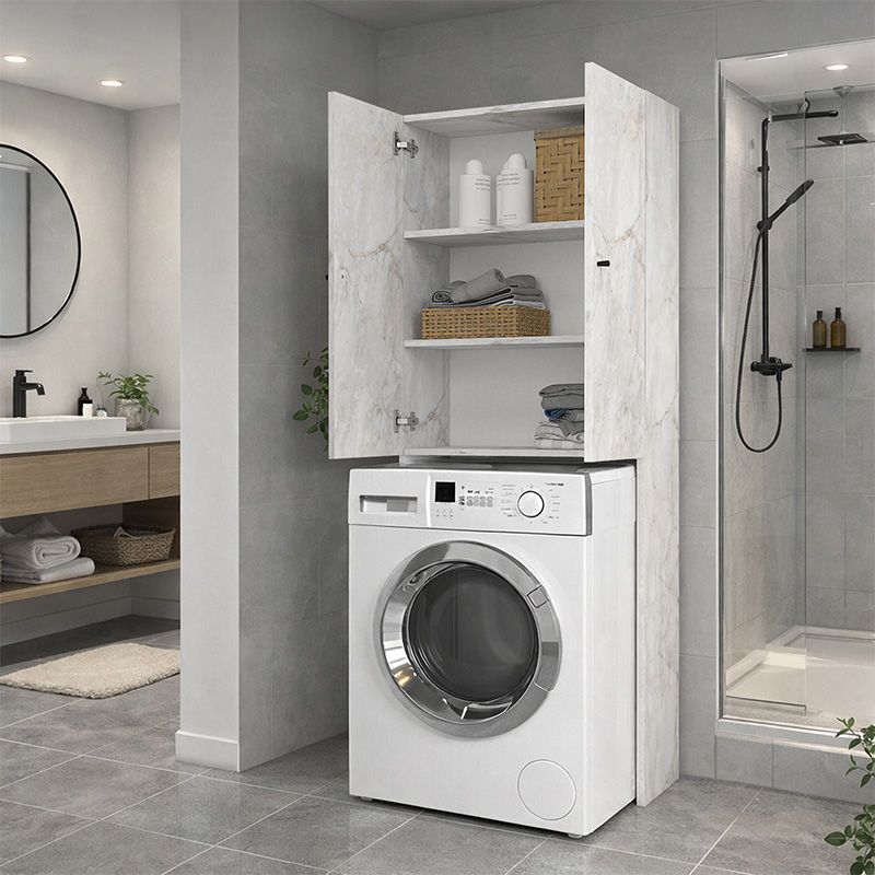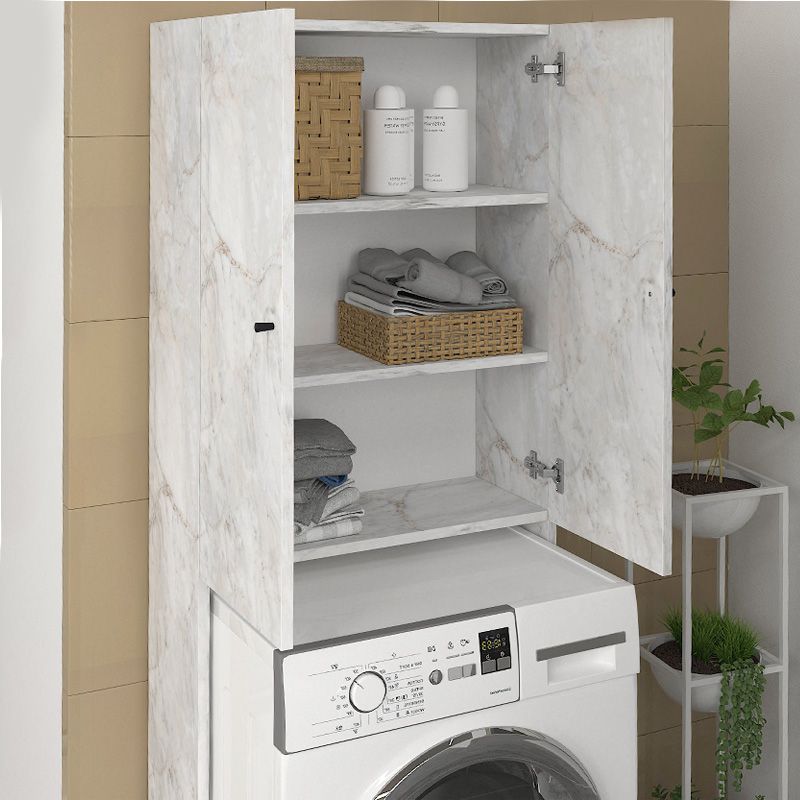 Έπιπλο πλυντηρίου Romme Megapap χρώμα λευκό εφέ μαρμάρου 65×27,1×180εκ.