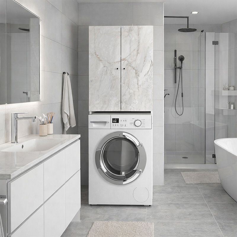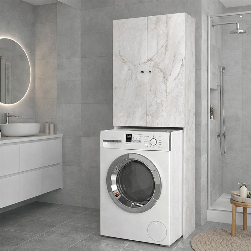 Έπιπλο πλυντηρίου Romme Megapap χρώμα λευκό εφέ μαρμάρου 65×27,1×180εκ.