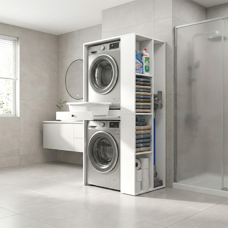 Έπιπλο πλυντηρίου – στεγνωτηρίου Bace Megapap χρώμα λευκό 90x60x187εκ.