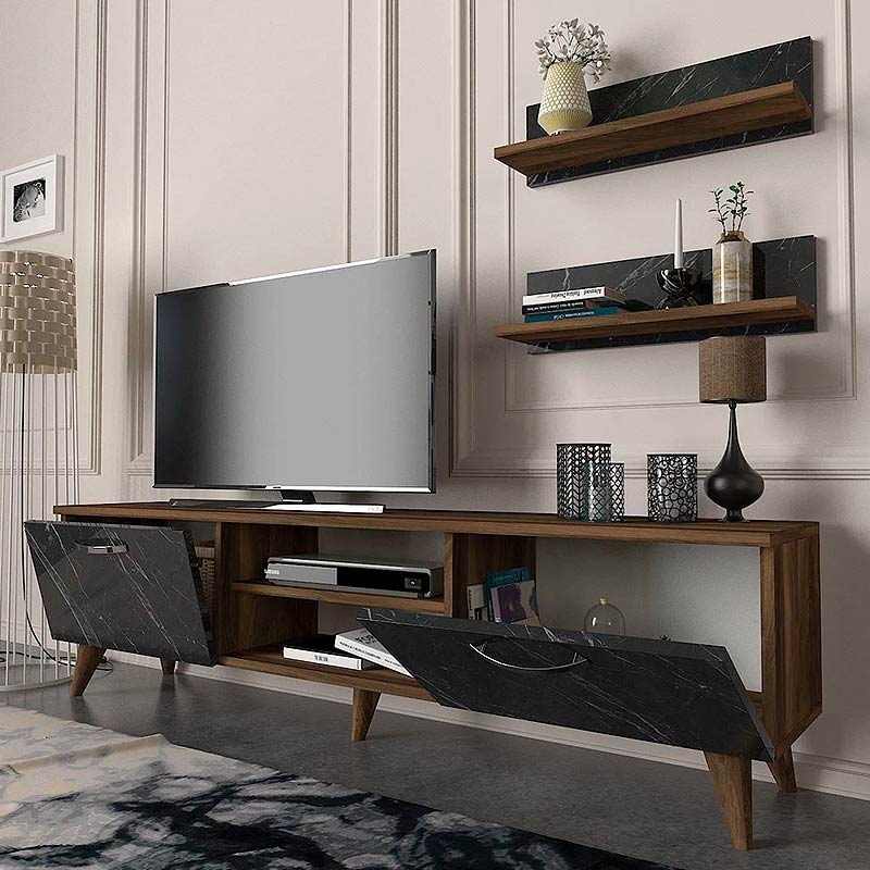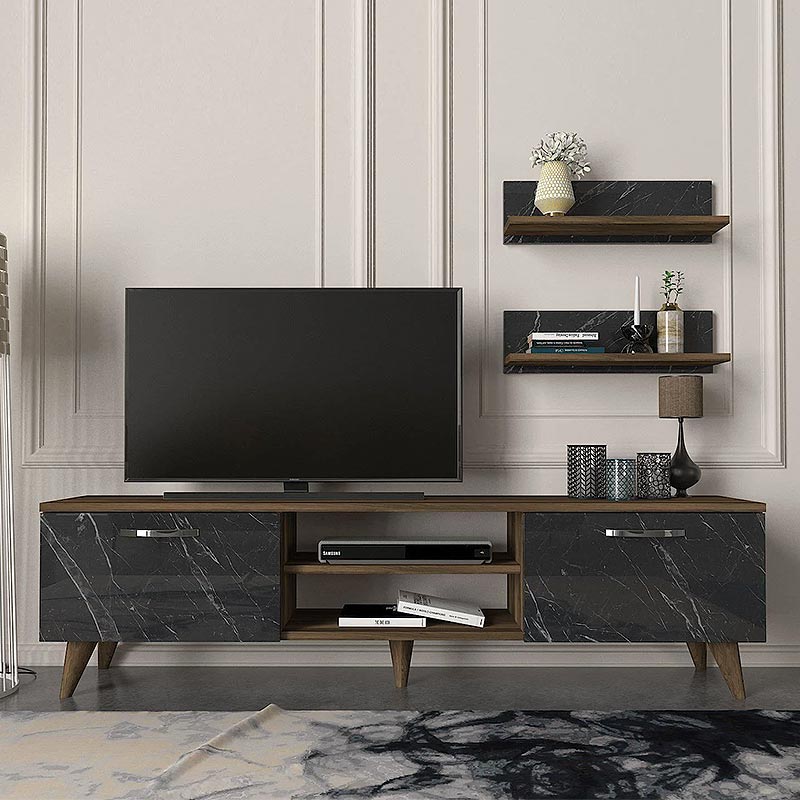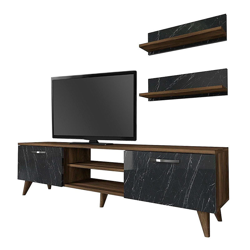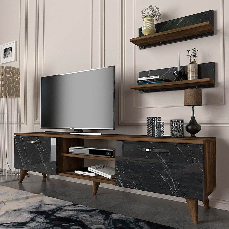 Έπιπλο τηλεόρασης Colin Megapap χρώμα καρυδί – μαύρο εφέ μαρμάρου 150×29,5×40,6εκ.