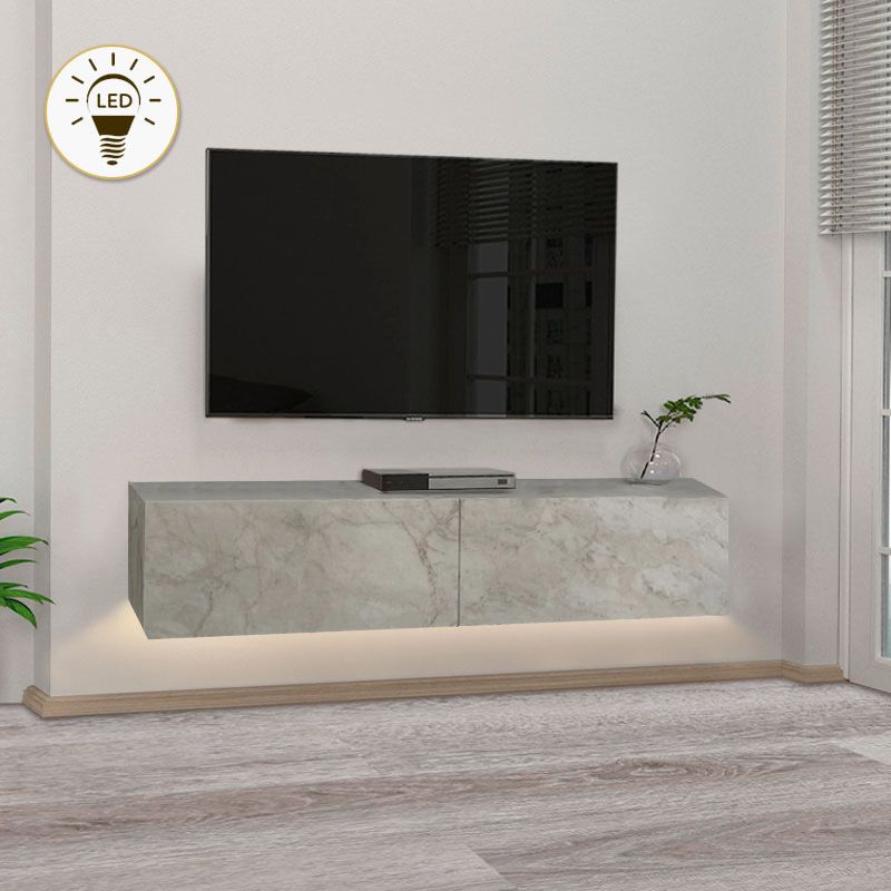 Έπιπλο τηλεόρασης επιτοίχιο Aristo Megapap με LED χρώμα λευκό εφέ μαρμάρου 135×31,6×25εκ.