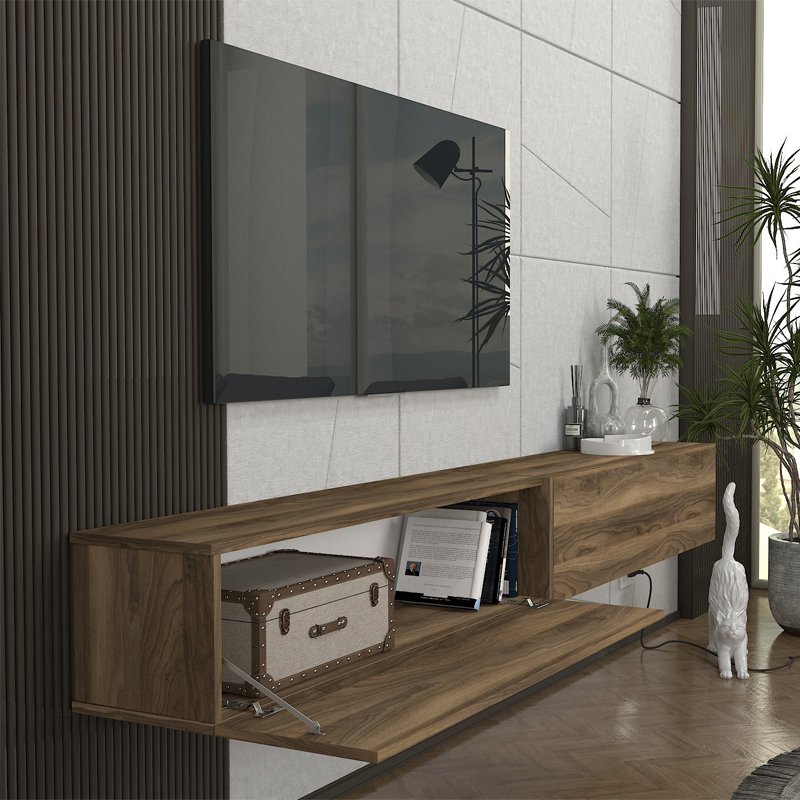 Έπιπλο τηλεόρασης επιτοίχιο Espanse Megapap χρώμα καρυδί 241,8×31,7×30εκ.