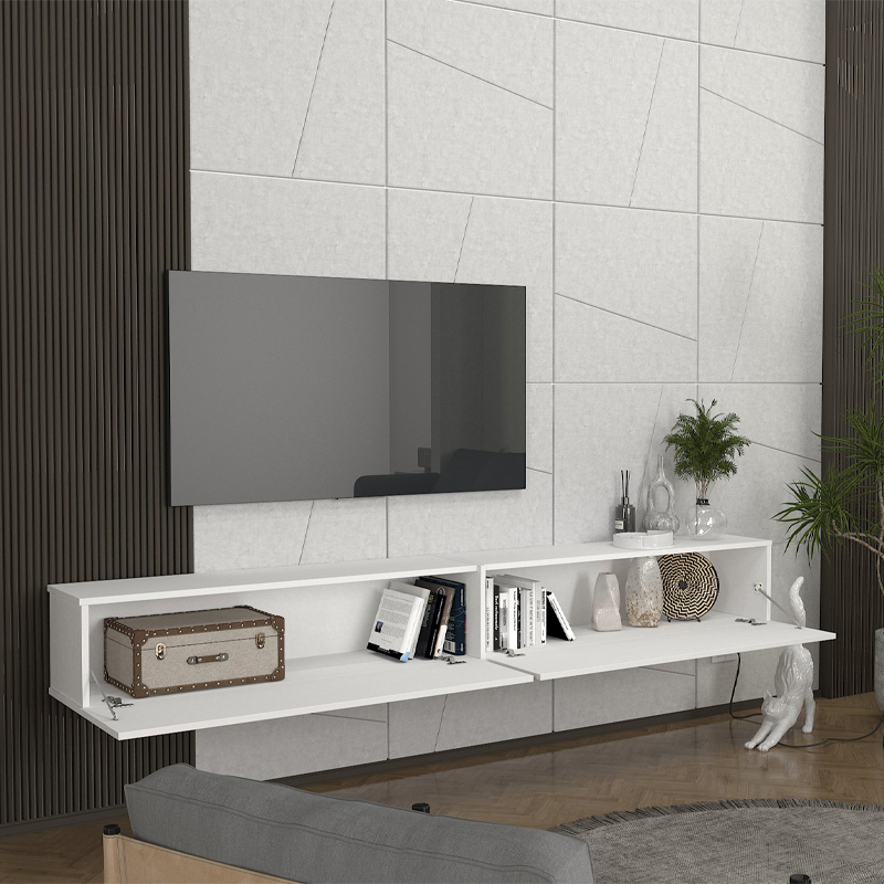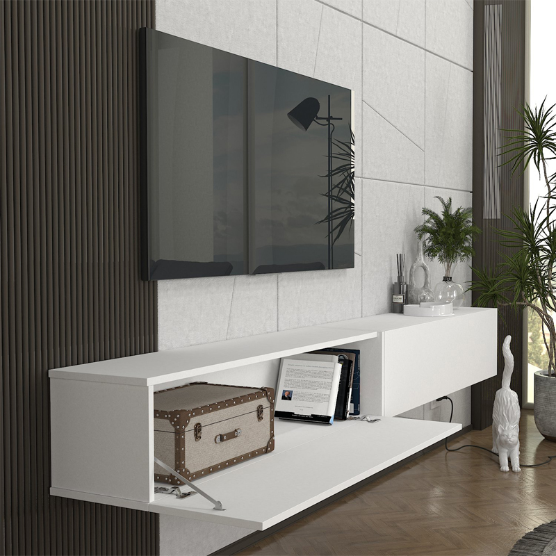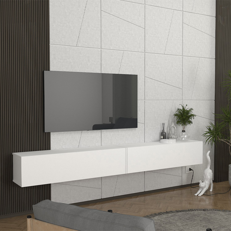 Έπιπλο τηλεόρασης επιτοίχιο Espanse Megapap χρώμα λευκό 241,8×31,7×30εκ.