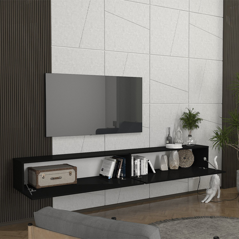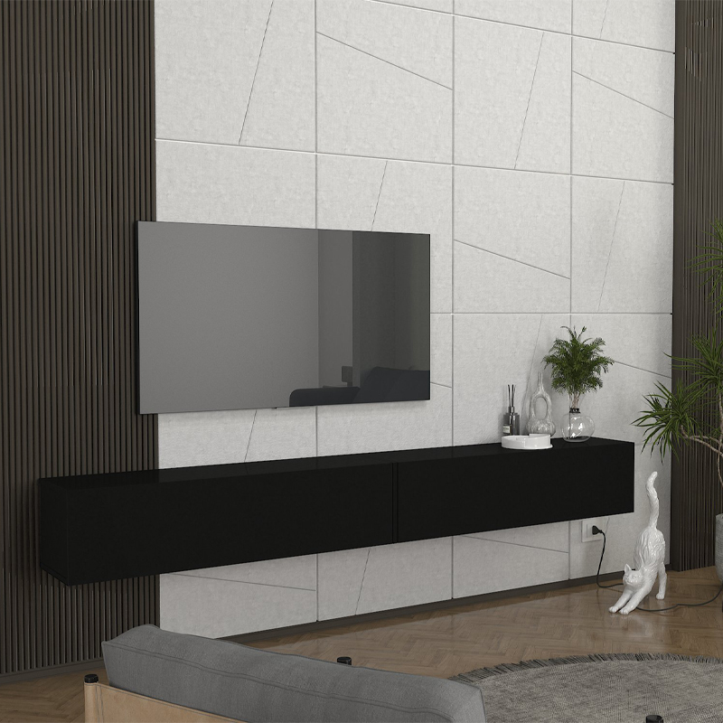 Έπιπλο τηλεόρασης επιτοίχιο Espanse Megapap χρώμα μαύρο 241,8×31,7×30εκ.