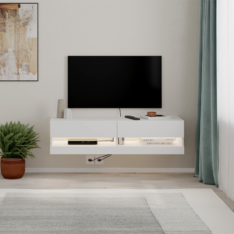 Έπιπλο τηλεόρασης επιτοίχιο Moon Megapap με LED χρώμα λευκό 120×33,8×30εκ.