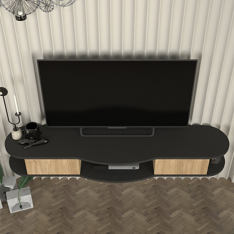 Έπιπλο τηλεόρασης επιτοίχιο Perk Megapap με LED χρώμα ανθρακί – sepet oak 150x35x19,2εκ.