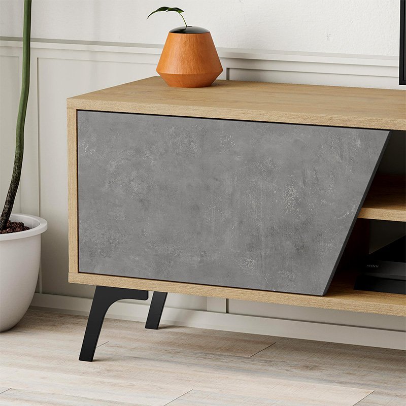 Έπιπλο τηλεόρασης Fiona Megapap από μελαμίνη χρώμα sapphire oak – γκρι ρετρό 180×35,6×48εκ.