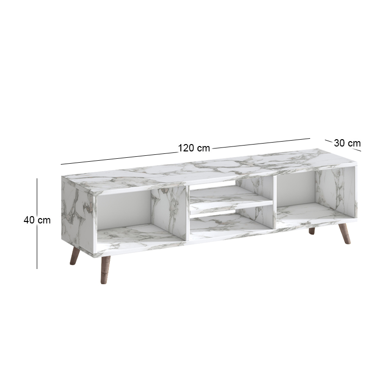 Έπιπλο τηλεόρασης Loren Megapap χρώμα λευκό εφέ μαρμάρου 120x30x40εκ.