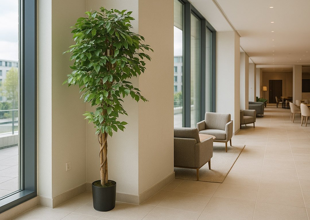 Τα τεχνητά δέντρα δε μαραίνονται ποτέ, ούτε χρειάζονται νερό και θρεπτικά συστατικά. Μοναδική φροντίδα που απαιτείται είναι το σκούπισμα τους με ένα πανί περιστασιακά.