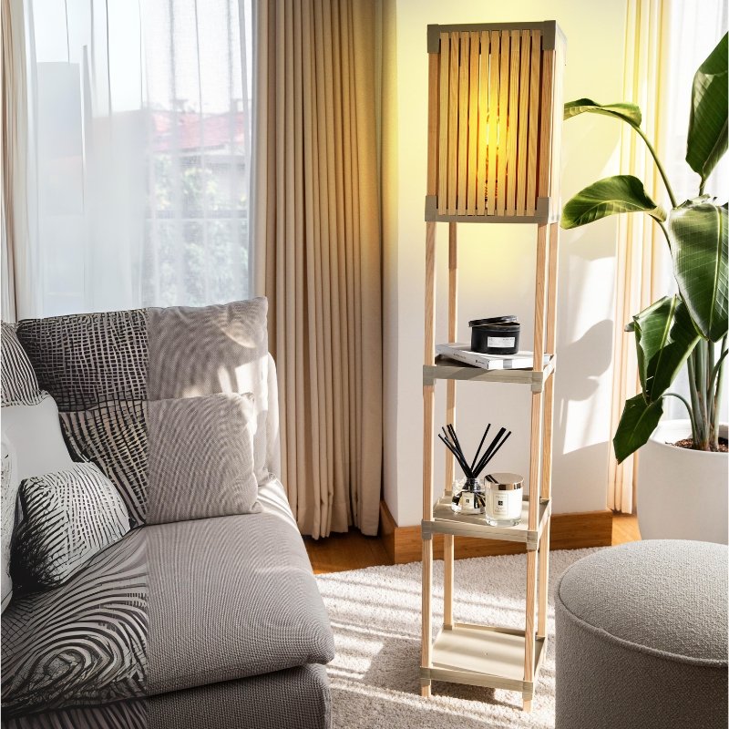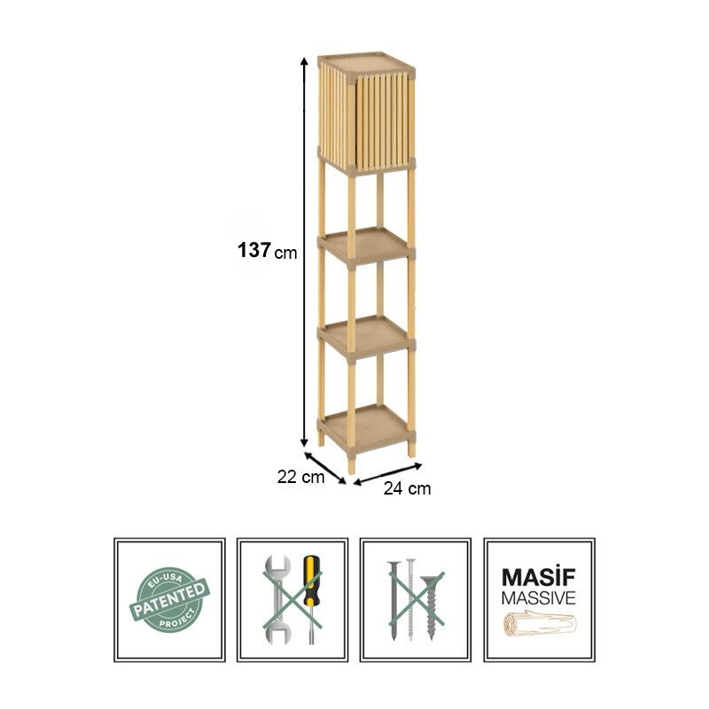 Φωτιστικό δαπέδου ξύλινο – πλαστικό χρώμα φυσικό – μπεζ 24x22x137εκ.