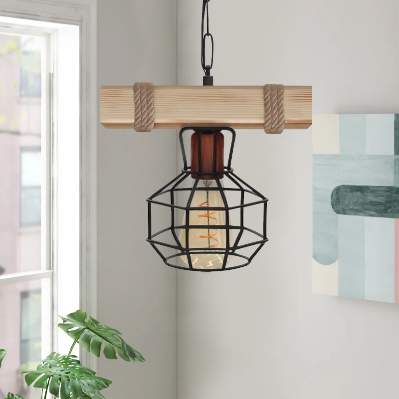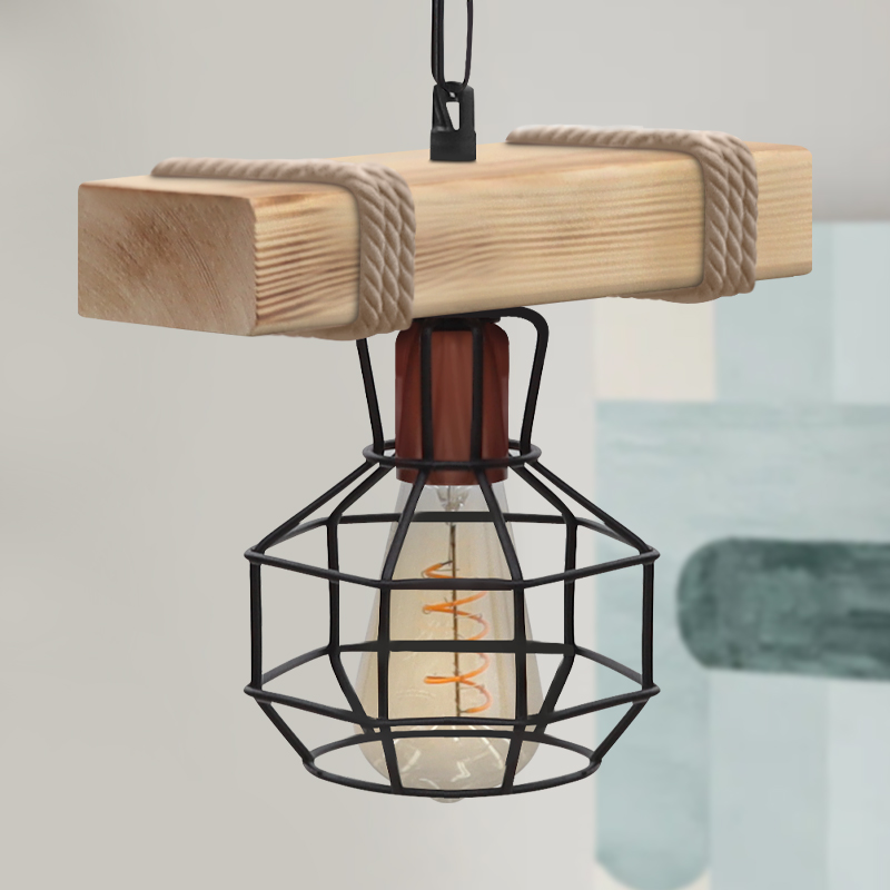 Φωτιστικό οροφής Lumenia Megapap E27 ξύλινο – μεταλλικό μονόφωτο χρώμα φυσικό – μαύρο 25x14x80εκ.