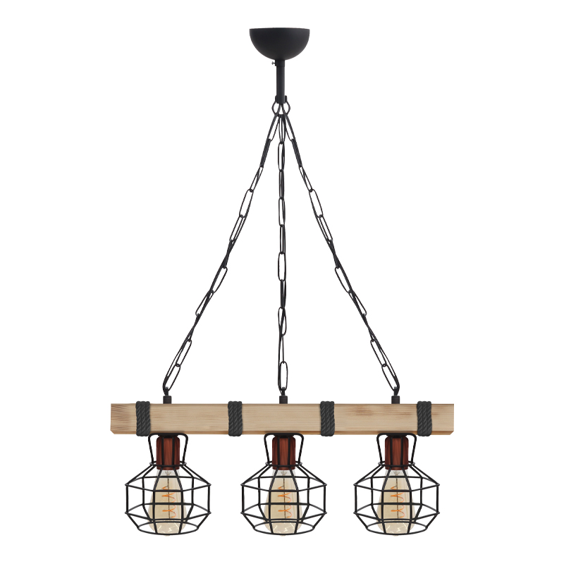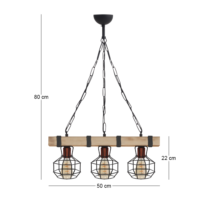 Φωτιστικό οροφής Lumenia Megapap E27 ξύλινο – μεταλλικό τρίφωτο χρώμα φυσικό – μαύρο 50x14x80εκ.