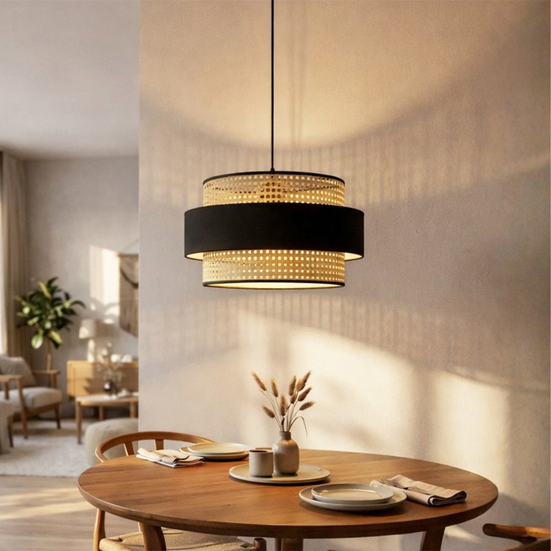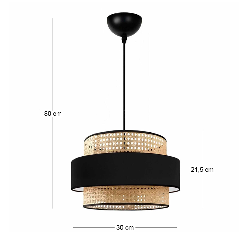 Φωτιστικό οροφής Orvia Megapap E27 ρατάν μονόφωτο χρώμα φυσικό – μαύρο Ø30×70εκ.