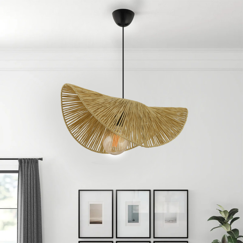 Φωτιστικό οροφής Taco Megapap E27 γιούτα μονόφωτο χρώμα camel 51x36x55εκ.
