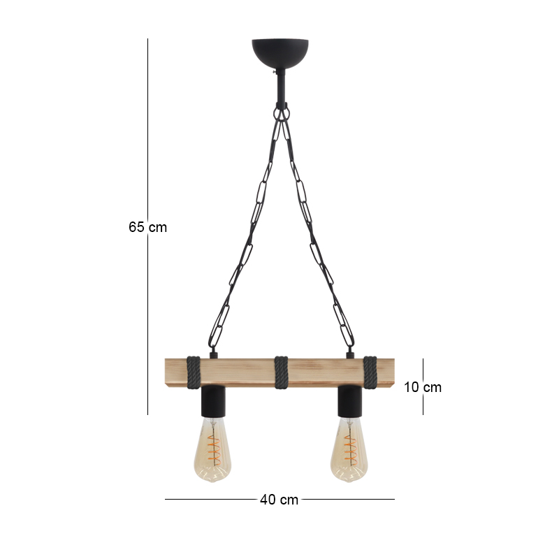 Φωτιστικό οροφής Vero Megapap E27 ξύλινο δίφωτο χρώμα φυσικό – μαύρο 40x8x65εκ.