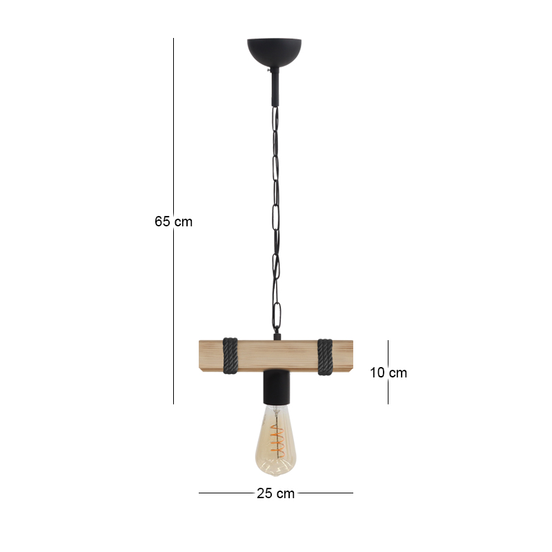 Φωτιστικό οροφής Vero Megapap E27 ξύλινο μονόφωτο χρώμα φυσικό – μαύρο 25x8x65εκ.