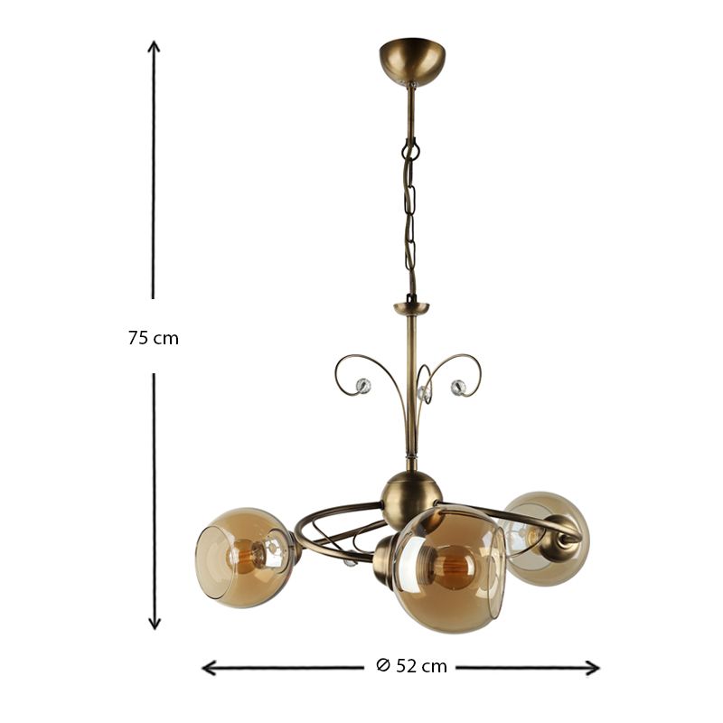 Φωτιστικό οροφής Zara Megapap E27 μεταλλικό τρίφωτο χρώμα μπρονζέ Φ52×75εκ.