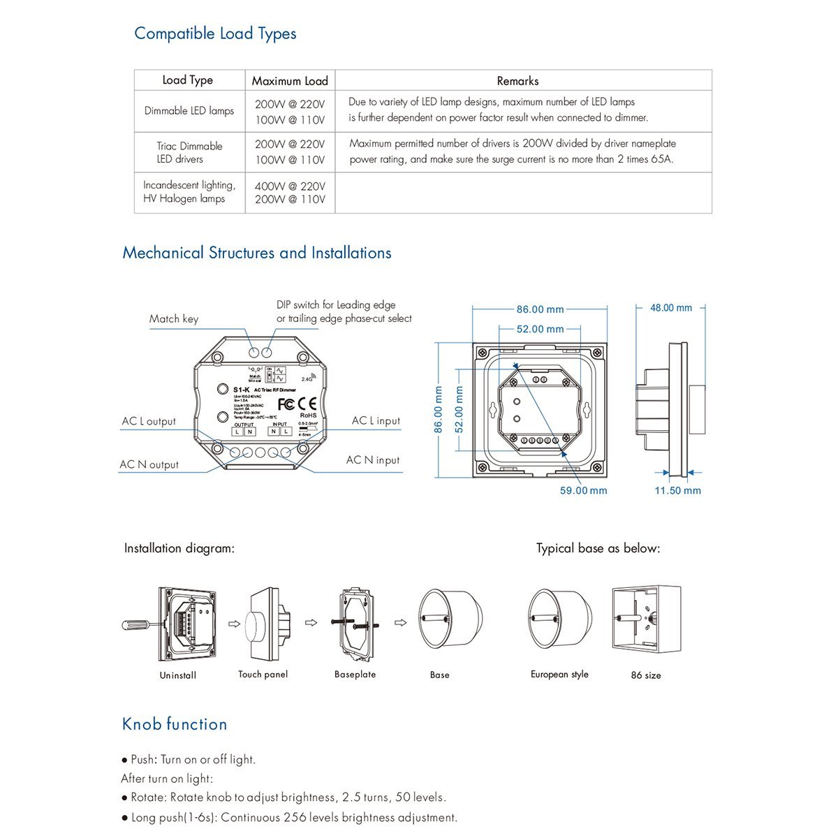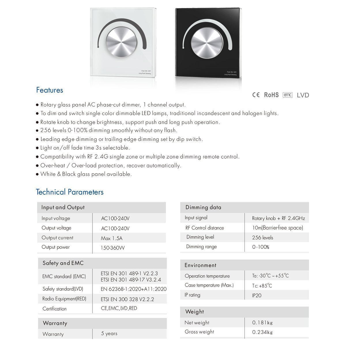 GloboStar® 71455 S1-K SKYDANCE AC Smart RF 2.4Ghz & Ροοστάτη – Push ON/OFF Triac Dimming AC100-240V σε AC100-240V 1 x 1.5A 360W – Max 1.5A 360W – IP20 – Μαύρο Σώμα – Μ8.5 x Π8.5 x Υ5cm – 5 Years Warranty