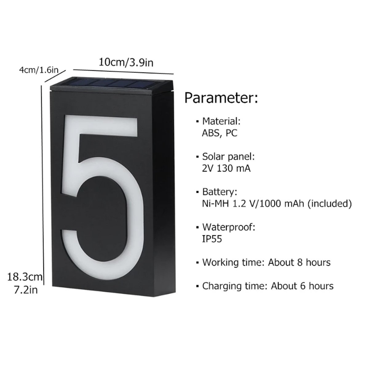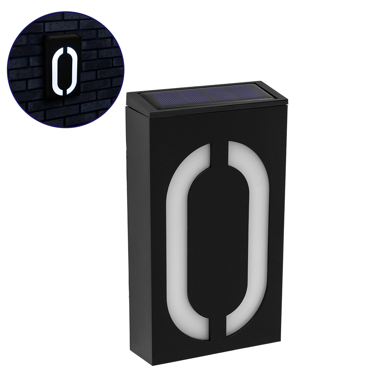 GloboStar® 71510 Αυτόνομο Ηλιακό Φωτιστικό LED SMD 1W 100lm με Ενσωματωμένη Μπαταρία 1000mAh – Φωτοβολταϊκό Πάνελ με Αισθητήρα Ημέρας-Νύχτας για Αρίθμηση Δρόμου με Αριθμό 0 Αδιάβροχο IP55 Ψυχρό Λευκό 6000K