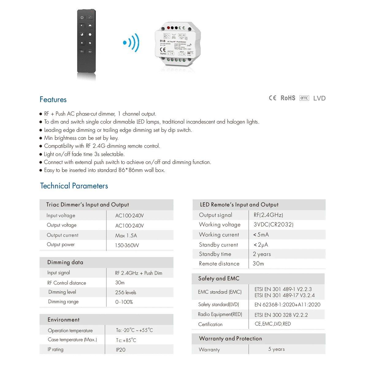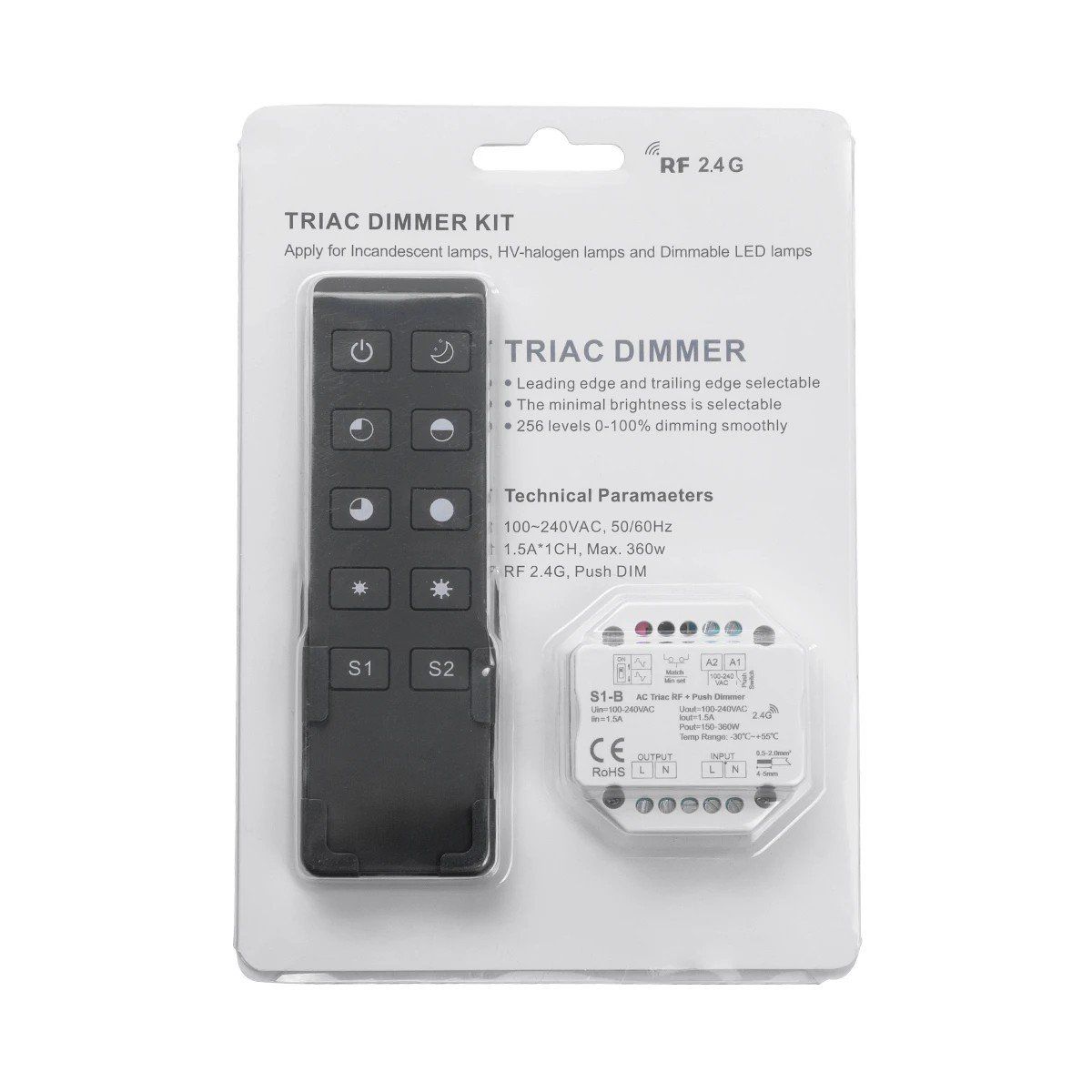 GloboStar® 73125 S1-B+R1 SKYDANCE ΣΕΤ Dimmer & Ασύρματο Χειριστήριο Αφής 1 Group RF 2.4Ghz 1.5A Max AC100-240V (360W) – DC 3V IP20 – 5 Χρόνια Εγγύηση
